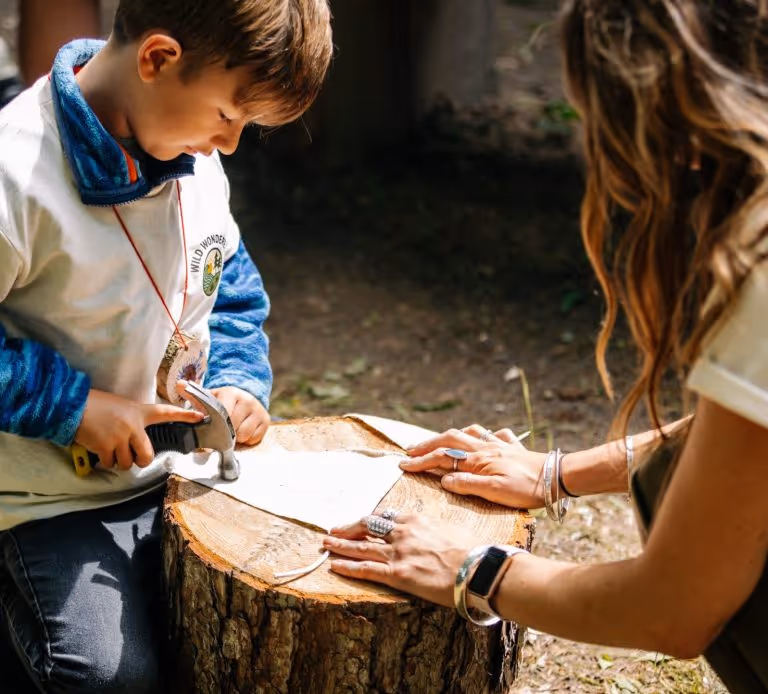 Here, learning happens by doing: building shelters, tying knots, whittling sticks, and following their curiosity. Participants are free to explore, play, build, create, imagine, and use all their senses to soak up the natural world around them.